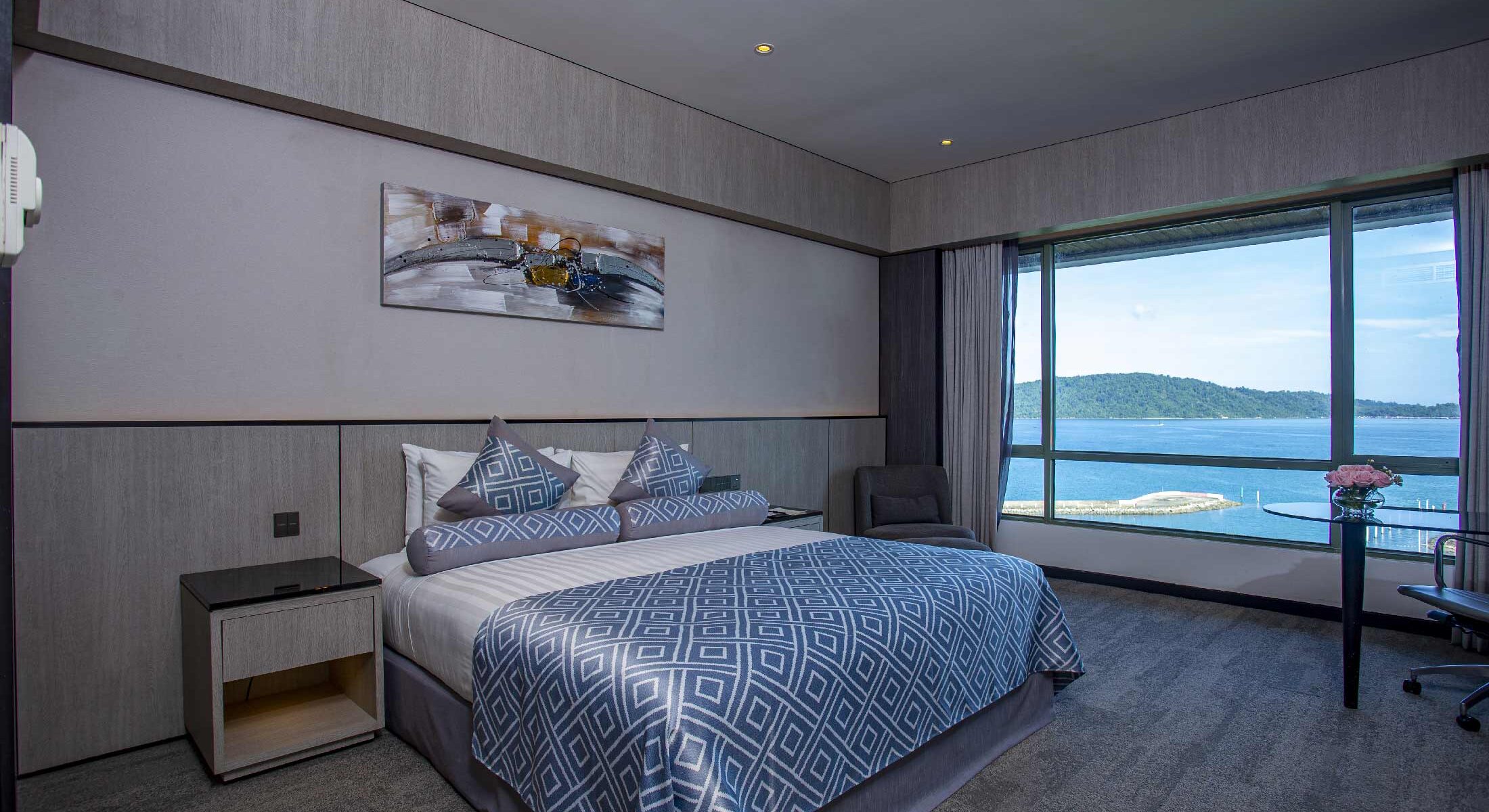 从豪华海景客房眺望南中国海、马努干岛及敦姑阿都拉曼海洋公园的群岛,景致壮丽非凡。傍晚时分,沙巴迷人的日落尽收眼底,位于沙巴亚庇最具景观的海景酒店留下难忘回忆。